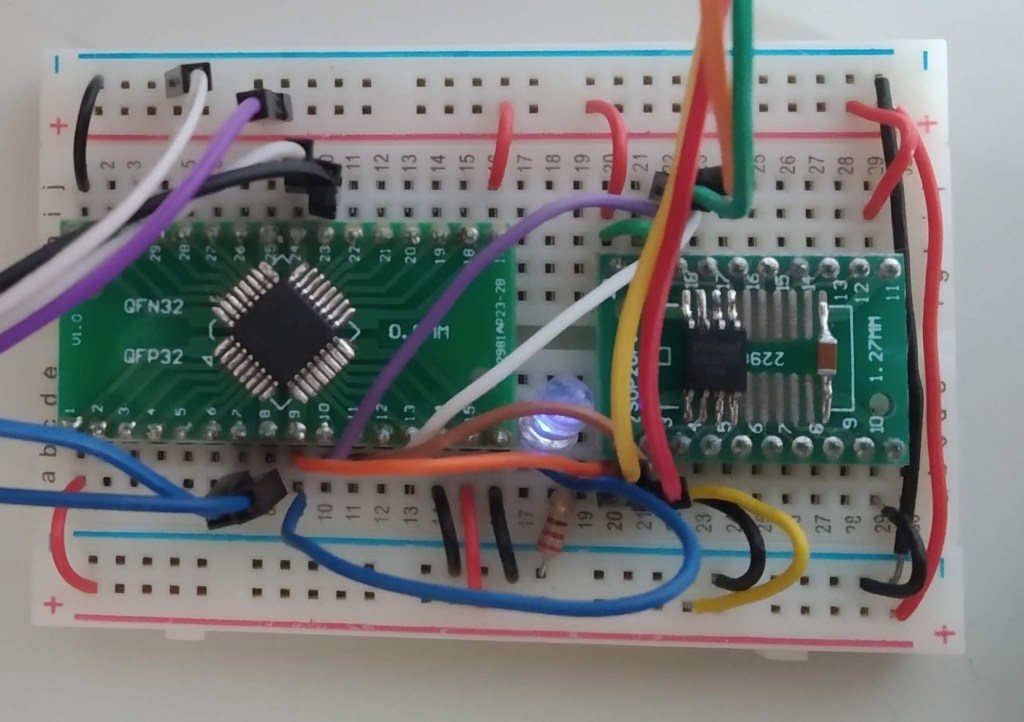 I have been working on an interface between an STM32G431 and a W25Q128FV SPI flash memory chip (128 Mbit/16MByte). The image above shows the memory chip on a breakout board with a surface mount capacitor next to it. Given the nature of breadboards and the wires used I’ve been running the memory interface at a reduced speed (1.3MHz). A PCB will be used at a later stage and which should allow for higher speeds.